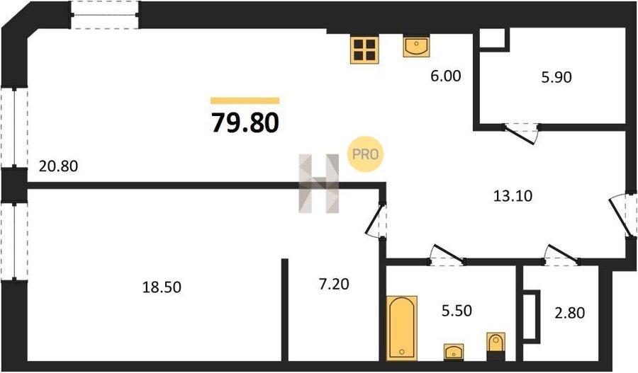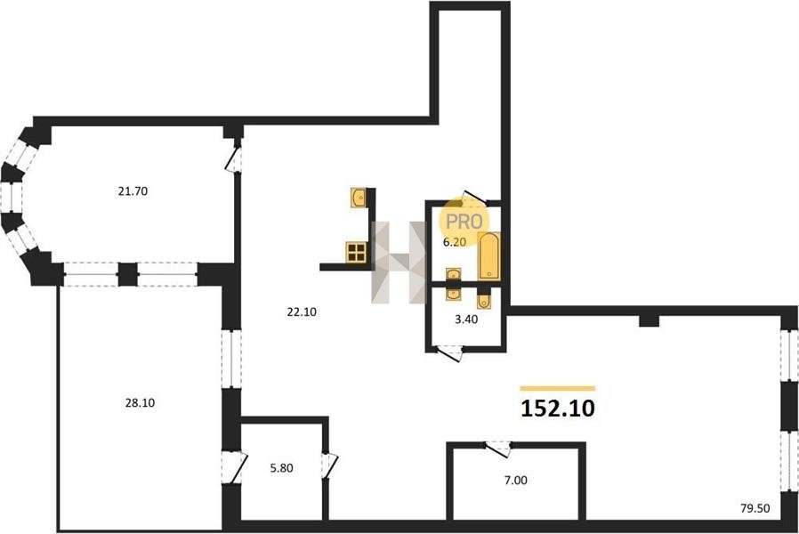 Площадь от 50.8 м2